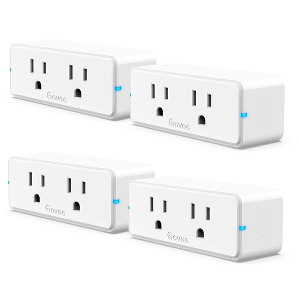 Govee Dual Smart Plug 4 Pack, 15A WiFi Bluetooth Outlet, Work with Alexa and Google Assistant, 2-in-1 Compact Design, Govee Home App Control Remotely with No Hub Required, Timer, FCC and ETL Certified