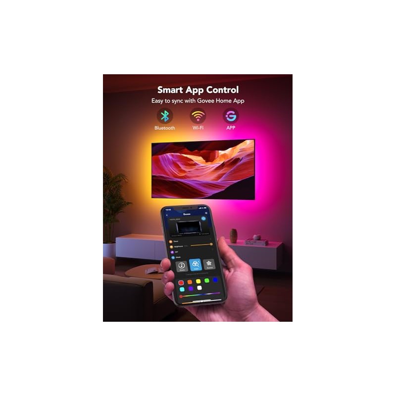 - Smart App & Voice Control: Manage the LED lights for TV lights with Govee Home App via Bluetooth & Wi-Fi, or use Alexa & Google Assistant for voice control. (Note: This model doesn't capture colors from your TV and 2.4G Wi-Fi only)