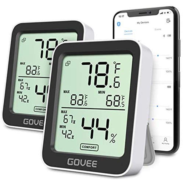 Govee Hygrometer Thermometer 2 Pack, Indoor Bluetooth Humidity Meter with APP Alerts, Room Thermometer with Large LCD Display, Max Min Records, 2-Year Data Storage Export