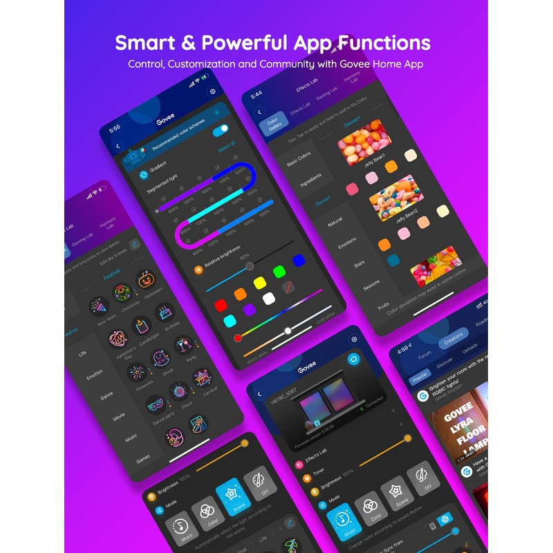 - Amplia función de bricolaje: hay diferentes opciones de iluminación personalizables para bricolaje. Luego, puedes compartir tus luces led que cambian de color en la comunidad de aplicaciones. Además, encontrarás más inspiración para traer colores vívidos en el Govee Light Studio.