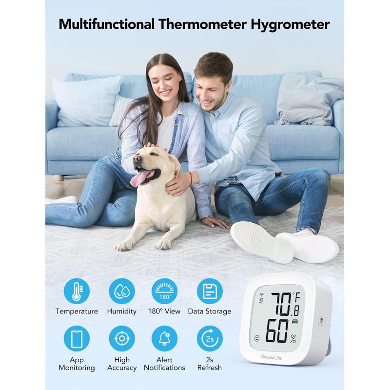 - Smart Alert Function: Set preset temperature and humidity ranges, and Govee Home App will alert you when the smart hygrometer thermometer detects that current readings are out of the preset range. Helps you respond faster to sudden changes.