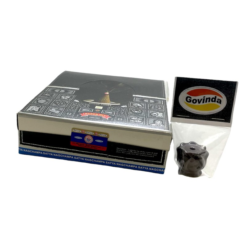 - Govinda Incense Cone Holder Bundle with Satya Bangalore (BNG) Super Hit Incense Cones- 12 Boxes x 12 Cones
