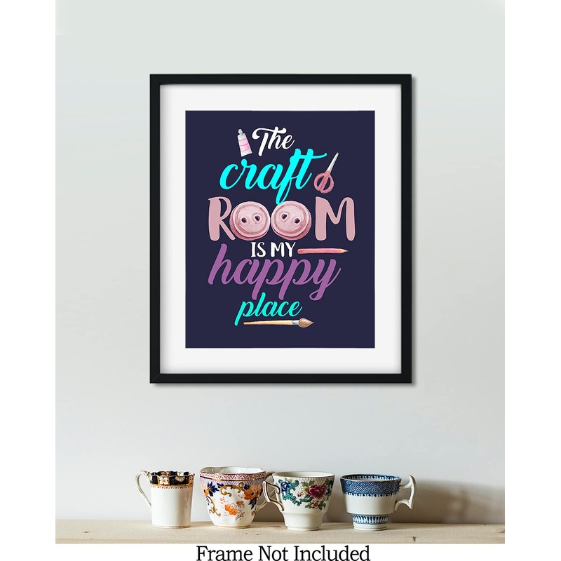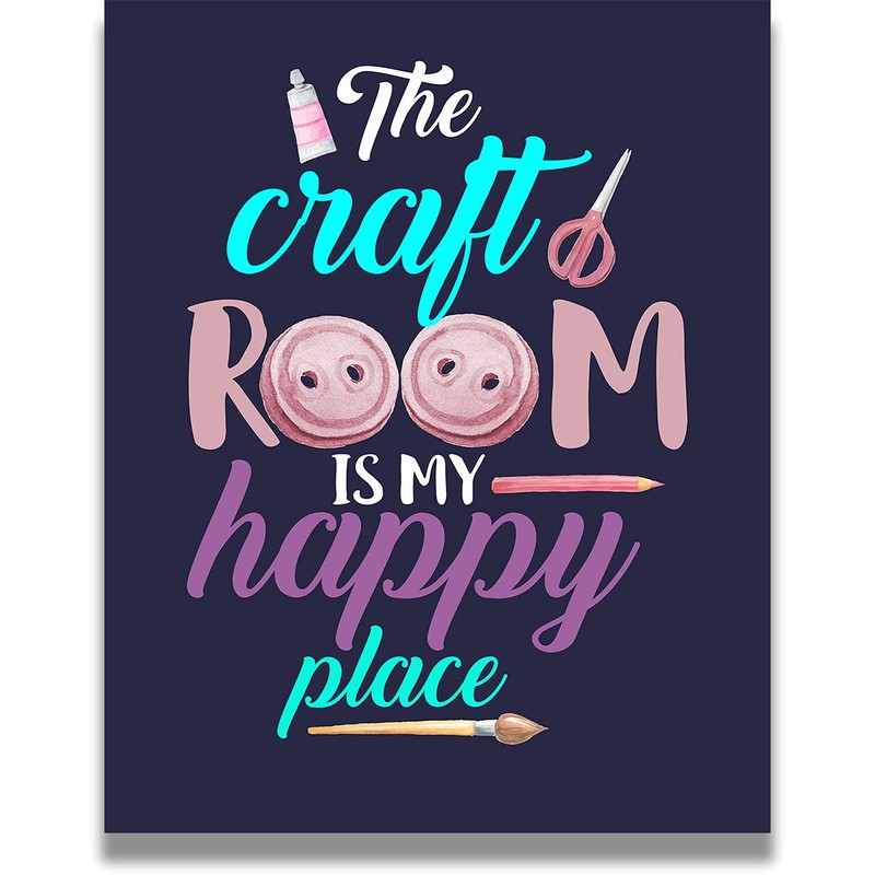 Govivo The Craft Room Is My Happy Place - A Cute Craft Room Wall Art Decor Print with a dark blue background - unframed artwork printed on photograph paper