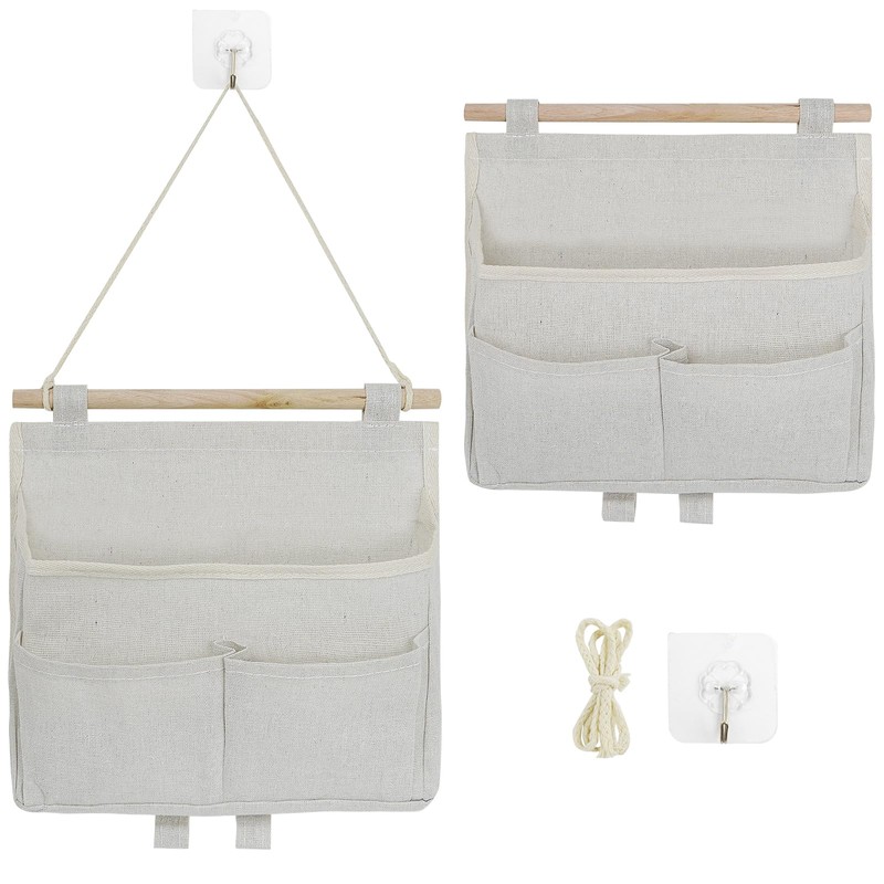 GOWTX 2Pcs Wall Hanging Storage Bag, Linen Fabric Hanging Storage, High Capacity Hanging Storage Bag with Pockets, Wall Mounted Hanging Pocket Bag with Hook for Bedside Dormitory Bathroom