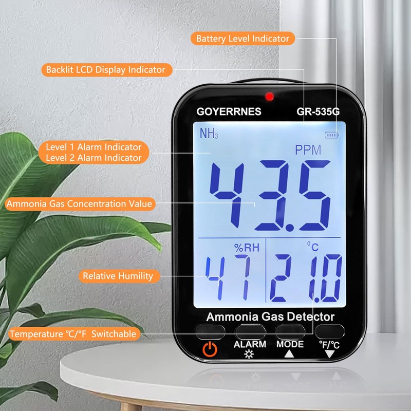- Customizable Alarm Settings: Enhance safety with the built-in ammonia alarm system. The GOYERRNES NH3 gas detector allows you to set two custom ammonia gas alarm levels. It will alert you with audible beeps and LED lights when the detected ammonia concentration reaches your preset limits.
