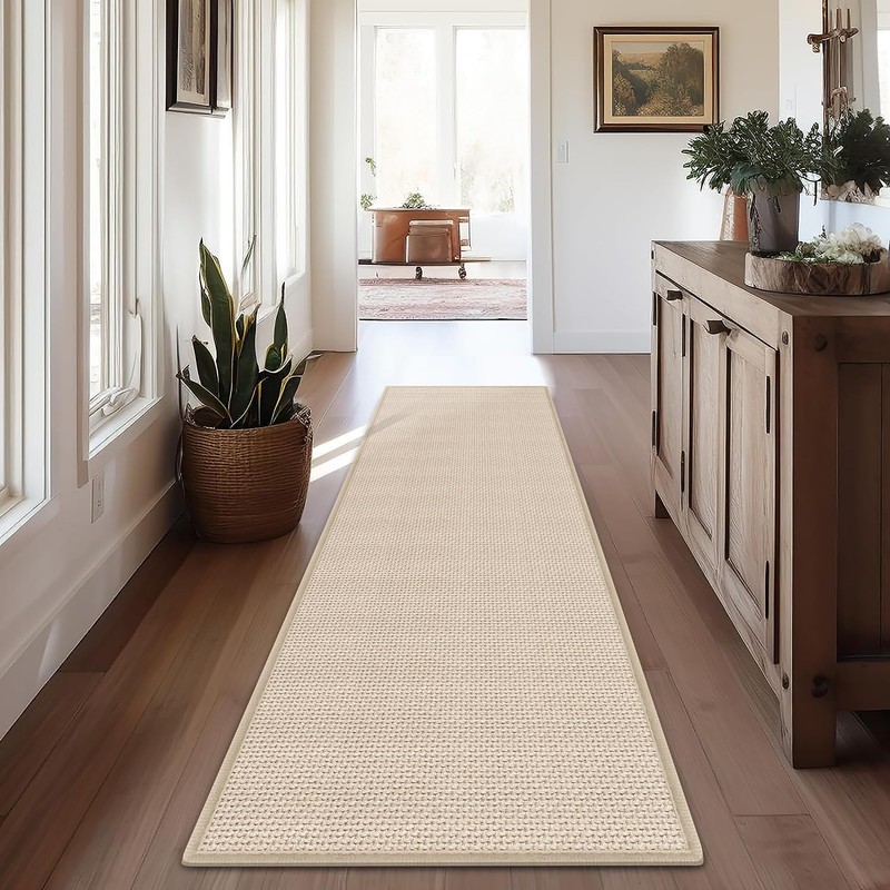 - Natural Jute: Rug runners for hallway non slip is made of natural jute with a soft and skin-friendly surface which is eco-friendly to your family. hallway runner rug are with the feature of sturdy and durable weaving structure for better to pamper your feet of soothes tired foot and shields toes from the cold floor.