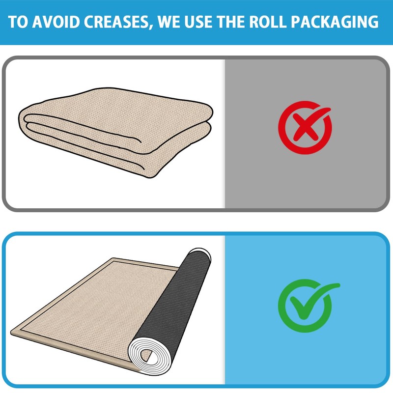 - Roll Package: Solve the buyer's problem with the creases on the runner, we changed the packaging for roll.