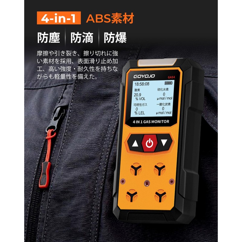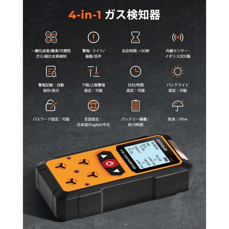 GOYOJO 4-in-1 Composite Gas Measuring Instrument (H2S, EX, O2, CO), Carbon Monoxide Checker, Japanese Voice Broadcasting, Carbon Monoxide Alarm, CO, Flammable Gas CH4, Hydrogen Sulfide H2S, Oxygen O2,