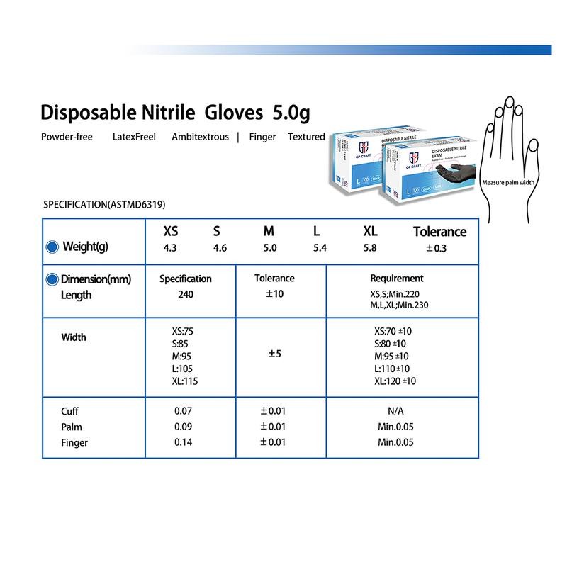 GP Craft Black Nitrile durable disposable gloves, 5 mil, powder free and latex-free, elastic, wear resistant, clean and waterproof Hand Thick - COUNT: 300pcs, SIZE: M