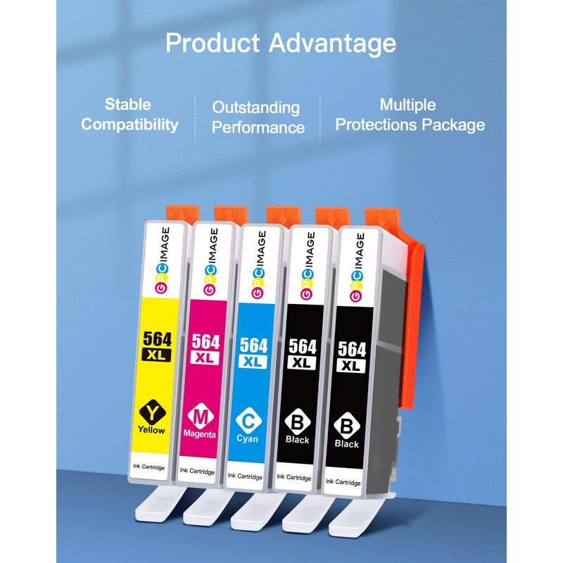 • GPC Image 5 Pack compatible ink cartridge replacement for HP 564XL 564 XL ink cartridges combo pack.
