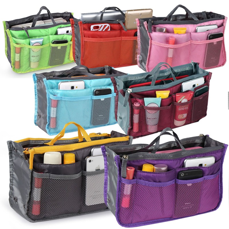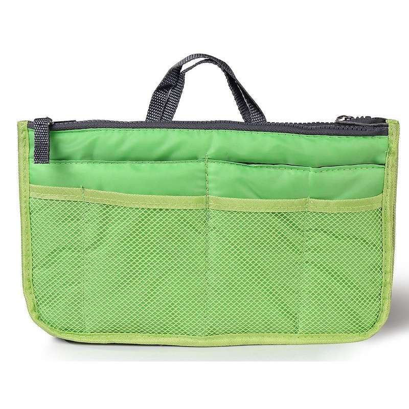 GPCT Large Multi-Pocket Expandable Nylon Travel Handbag/Purse Insert Organizer W/ Handles. 13 Compartments & 2 Zipper Pockets. Keeps Handbag/Purse Neat/Tidy! Great for Keeping Cosmetics/Makeup- Green