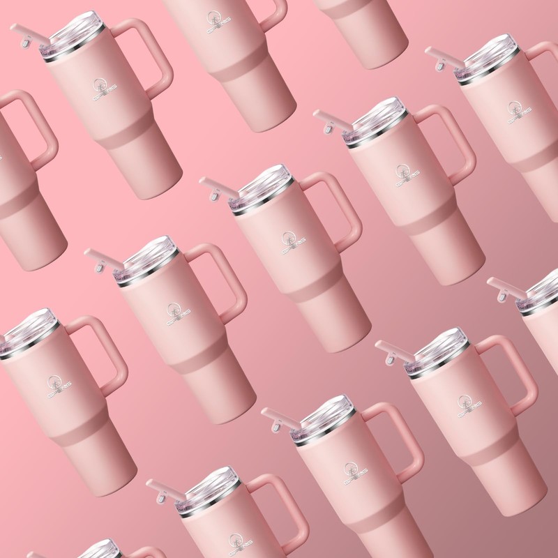 Gpeng 40 oz Tumbler with Handle, Water Bottles with Straw Lid, Insulated Stainless Steel Travel Mug Cup Holder Friendly, Keep Drinks Cold or Hot for Hours (Lightpink, 40 oz)
