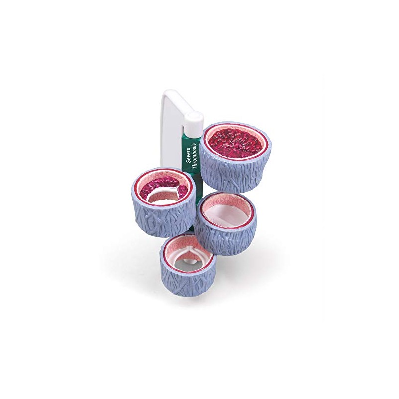 - Model Specifications: The last stage shows a vein with its valves open and a severe blood clot. The human anatomy model comes with an information card. The model measures 4.25" x 1.25" x 1.875", while the information card measures 6.5" x 5.25".
