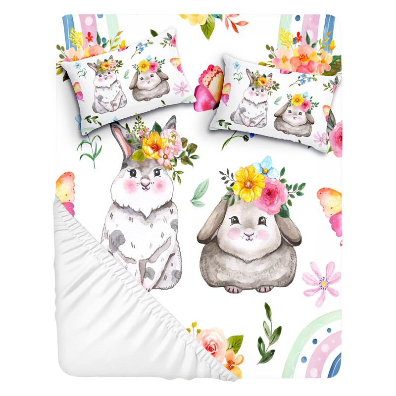 GPLYFBU Bunny King Size Sheets Set 78"X80" Soft Microfiber Fitted Sheet with 2 Pillow Cases 16" Deep Pocket Bed Printed Bedroom Decor Sheet Set