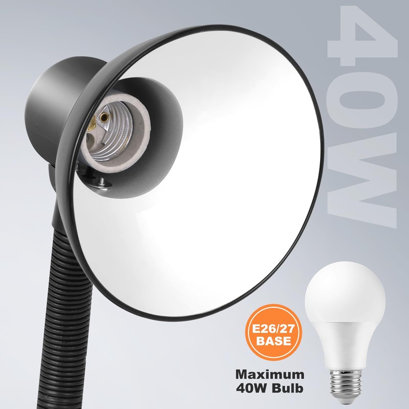 GPOASRI Metal Desk Lamp with Clamp, Clip Desk Lights for Home Office, Work, Study, Reading, Multi-Joint, Black,Swing Arm, Adjustable Gooseneck Table Lamp