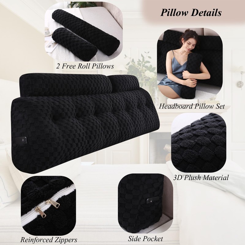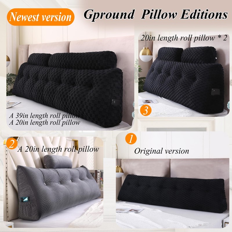 Gpround Wedge Headboard Pillows + A Long and Short Head Roll Pillows Bed Wedge Pillow for Headboard Large Bolster for Bed Backrest Pillows for Sitting in Bed