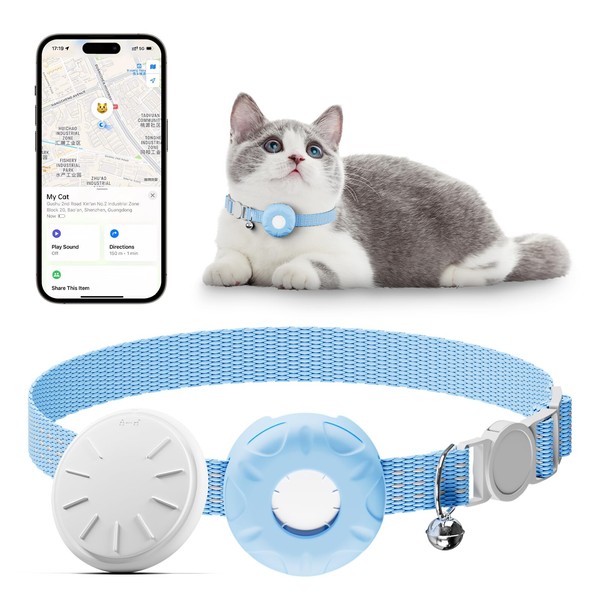 GPS Cat Tracker, Pet Tracker for Cats with Breakaway Cat Collar, Compatible with Find My App(iOS Only), No Monthly Fee (Blue)