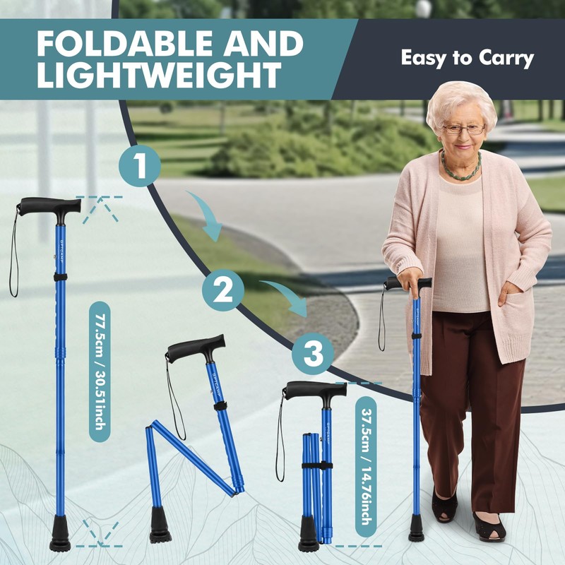 GPTCAMP Walking Cane for Men & Women,T-Grip Handle Adjustable Canes | Collapsible & Folding Design, Anti-Slip Pivot Tip, Lightweight Durable Walking Sticks for Seniors & Adults(Dark Blue)