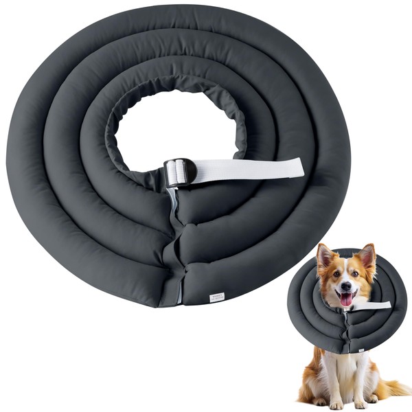 GQIRIL Soft Dog Cone Collar - Adjustable Comfy Recovery Cone for Medium Dogs After Surgery to Stop Licking, Waterproof Elizabethan Protective Neck Donut Collar Alternative for Pet (Grey, XL)