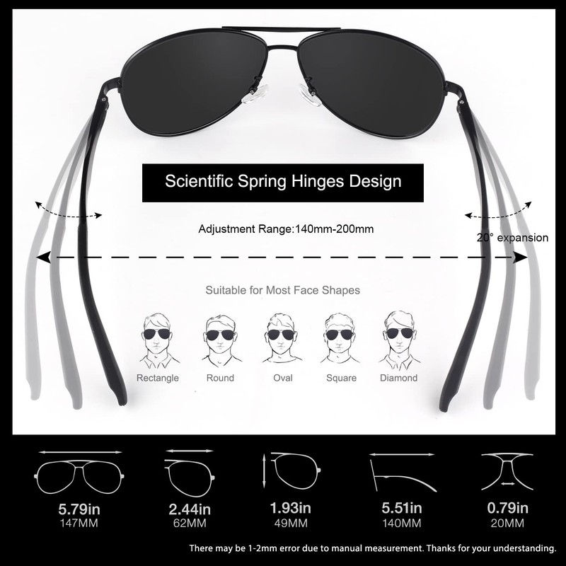 - Aluminum Magnesium alloy makes the frame lightweight and durable. You can hardly feel them even after all-day wearing. Adjustable spring hinges and nose pads fit any face shapes and allows for maximum comfort and flexibility while engaging in sports and recreational activity.