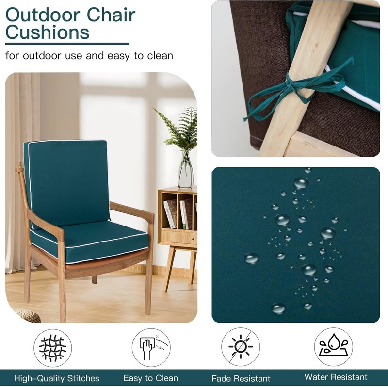 - Ties to keep Stable - Attached 4 ties can keep patio furniture cushions securely fastened to your chairs and not moving easily. The outdoor seat cushion is a built: in double layer of delicate stitched edges for added aesthetics, ensuring greater durability under the strength of pressure.
