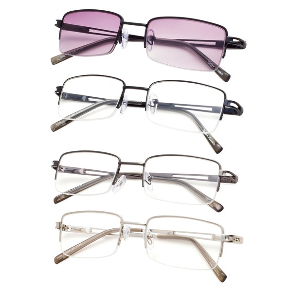 Gr8Sight 4-Pack Half-Rim Reading Glasses For Men and Women With Spring Hinges Metal Readers +0.50