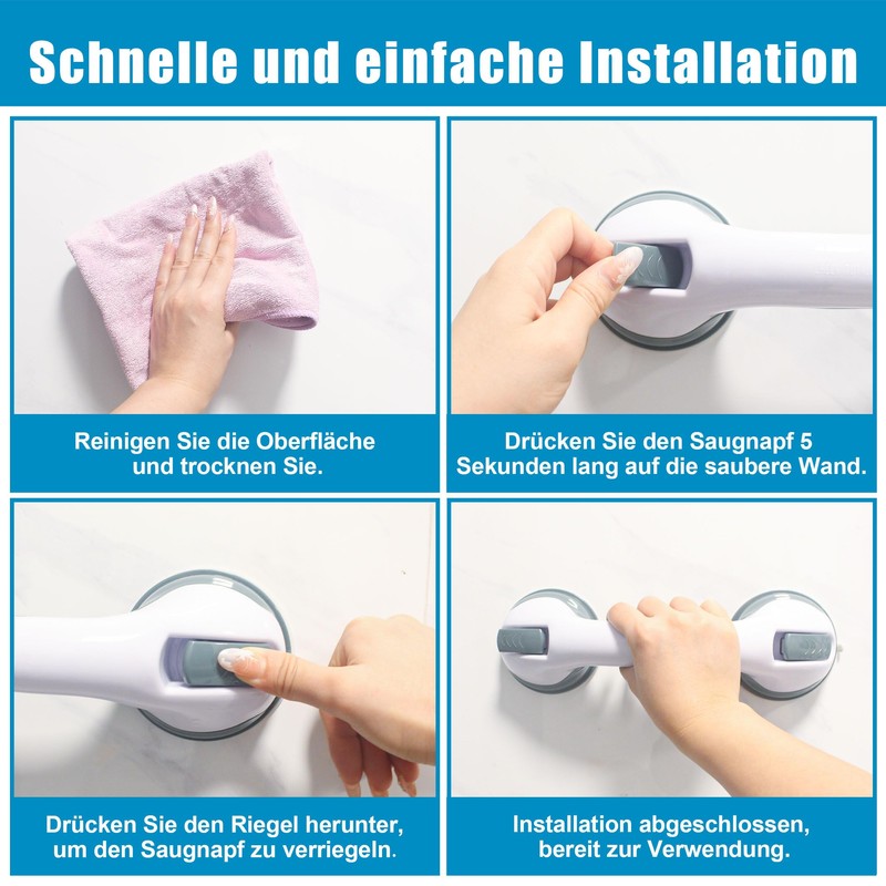 - Easy to install: the grab bars for bathroom are easy to install, no drilling, no tools required, just open the two brackets and place them on a wipe-tested smooth surface, then press to close, safe and fast.
