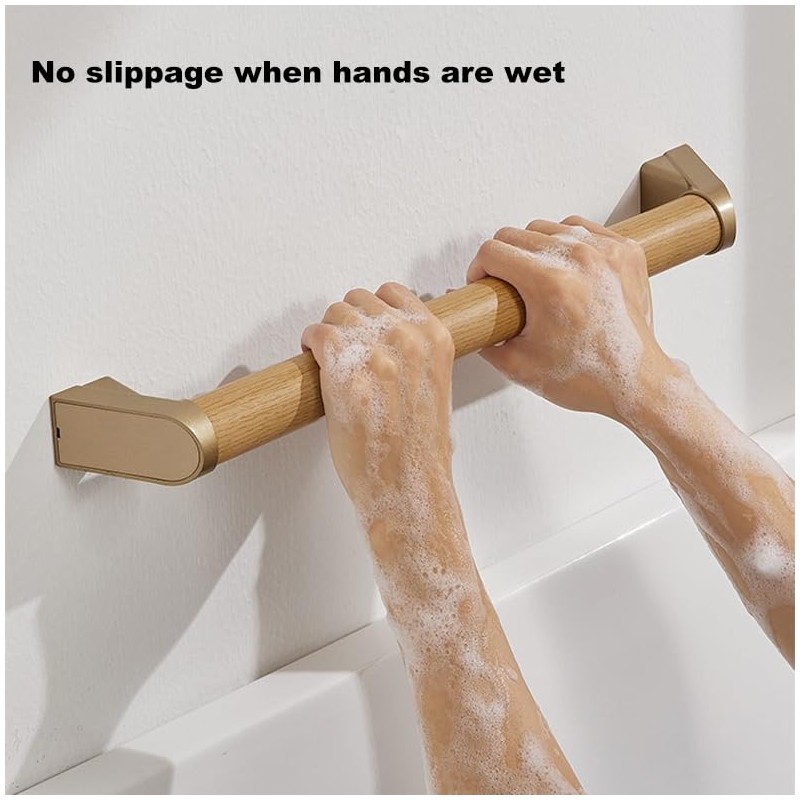 - ERGONOMIC DESIGN The grab bar is ergonomically designed, the wooden grab bar ensures a comfortable grip in the shower and prevents slipping with wet hands, creating a healthy shower environment for seniors. This grab bar is ideal for use in bathtubs, showers, toilets or on stairs.