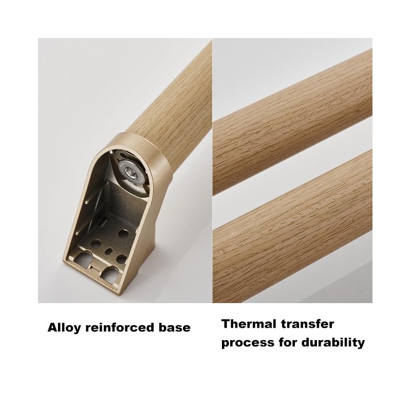 - Wooden grab bars are unique in design, elegant in color and easy to install. The wooden material has a high waterproof, non-slip and heat resistance. It is suitable for bathroom, toilet, kitchen, room, hallway and other places.
