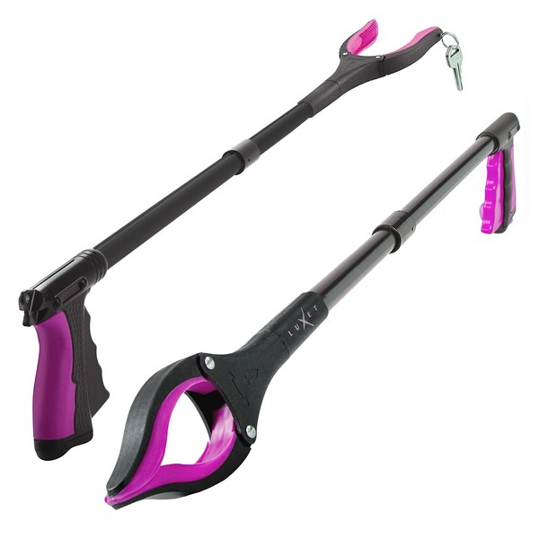 Grabber Reacher Tool - 2 Pack - Newest Version Long 32 Inch Foldable Pick Up Stick - Strong Grip Magnetic Tip Lightweight Trash Picker Claw Reacher Grabber Tool Elderly Reaching - by Luxet (Pink)