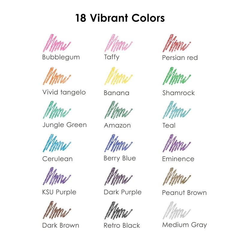 - The 18-color gel pen set with a convenient push-button pen tip upgrade! No more fretting about misplaced pen caps – simply click and start creating. These pens boast extra-large ink cartridges and a robust design, promising uninterrupted creativity for hours on end. What's more, they're crafted to be acid-free and non-toxic.