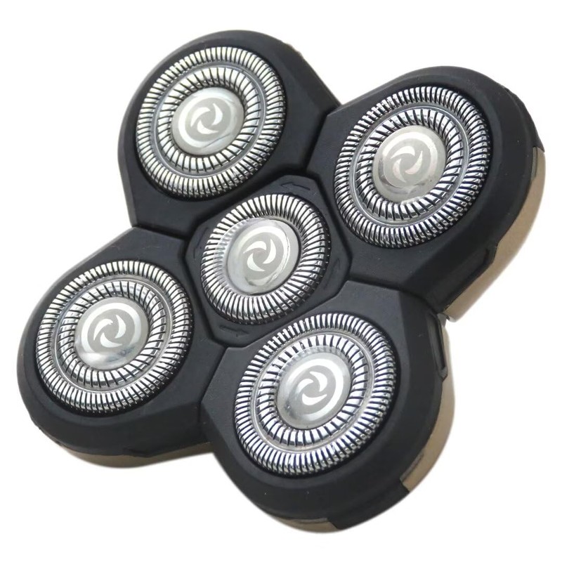- For 5 Dual Track Shaver Heads - Five large flexing rotary blades allow efficient close shaving for all types of skin closely following all the contours of your head, face and neck, Each blade has an independant rotation allowing better access to difficult areas
