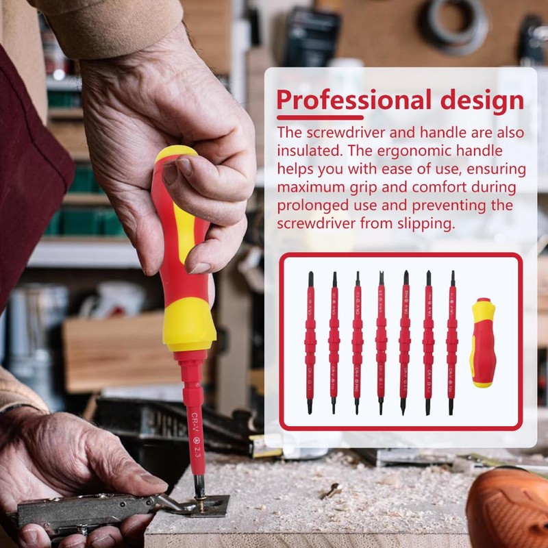 - Material: Insulated screwdriver set is made of high quality chrome vanadium steel + ABS material, high hardness