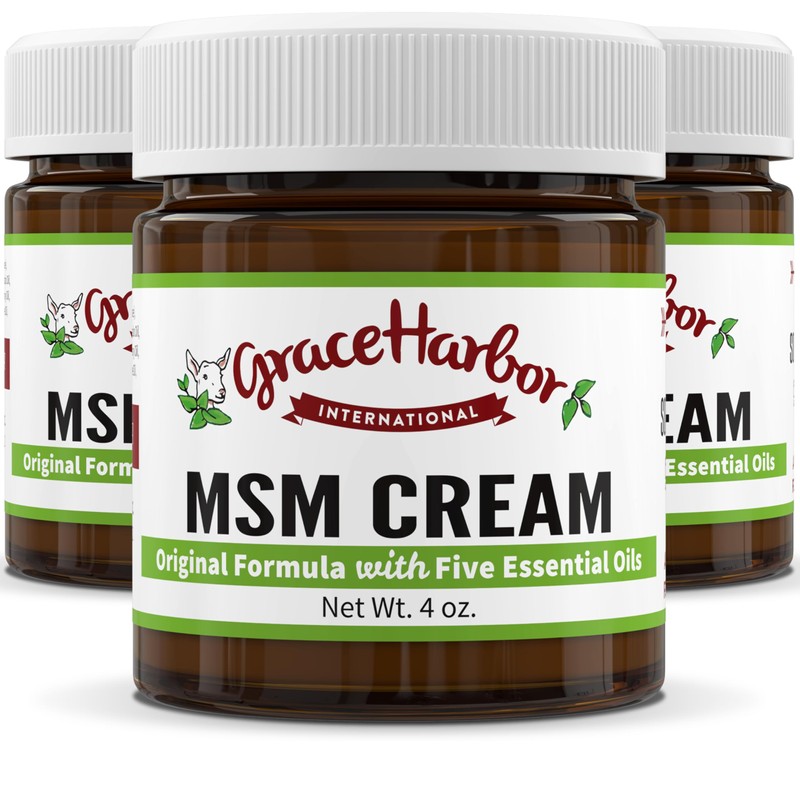 Grace Harbor MSM Cream – Original – Daily Skin, Muscle and Joint Rub with Goat Milk, Essential Oils & MSM – Neck, Back, Shoulder, Elbow, Knee, Hand and Foot Therapy – 4 oz (3 Pack)