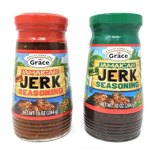 Grace Jamaican Hot & Mild Jerk Seasoning 10oz, 2 Pack