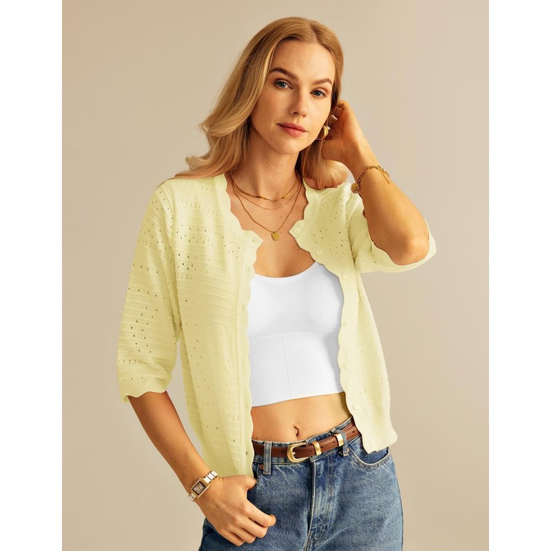 GRACE KARIN 3/4 Short Sleeve Cardigans for Women Lightweight Button Up Knit Cropped Sweater Summer Open Front Casual Shrugs Yellow S