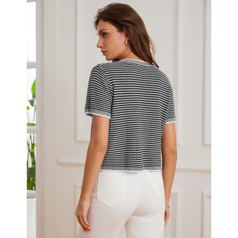 - 𝐒𝐭𝐲𝐥𝐞: Chic cropped cardigan with a straight "H" silhouette, accommodating various body types. Classic short sleeves and round neck, with front buttons for versatile styling options