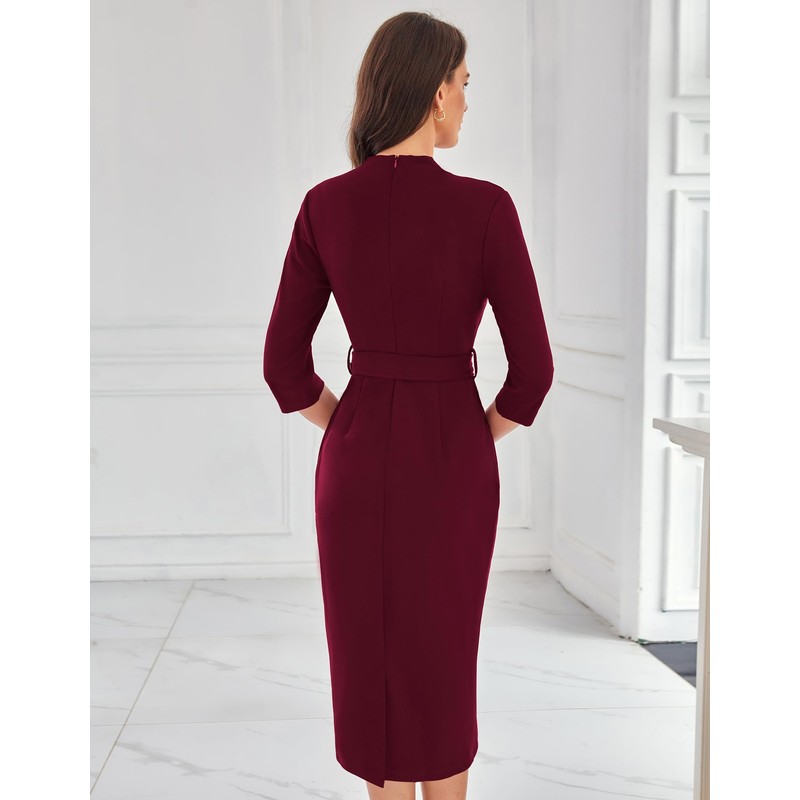 GRACE KARIN Professional Dress for Women Burgundy Bodycon Dress 3/4 Sleeve with Pockets Formal Wedding Guest Cocktail Dresses for Women XXL