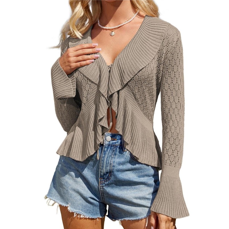 GRACE KARIN Women's Cardigan Long Sleeve V-Neck Elegant Lightweight Cardigan Bolero Jacket Cardigan with Tie Front, khaki