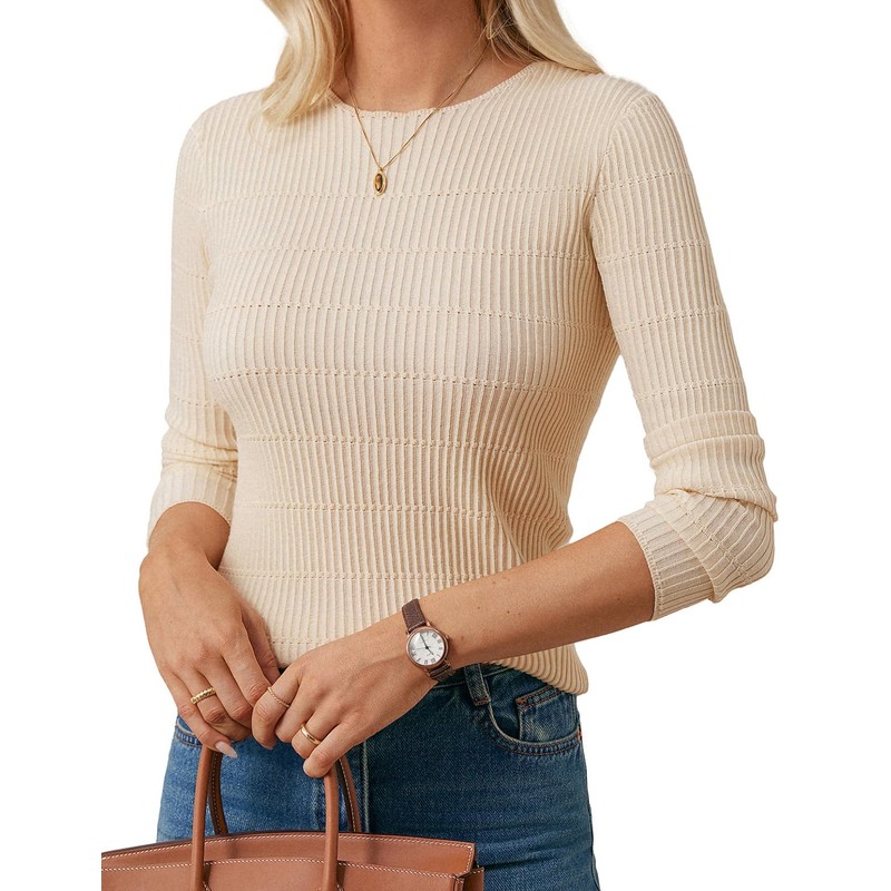 - Knit Ribbed Design: Solid color, crew round neck, slim fit, hits at the hips, neither too long nor too short, fully textured, ribbed loops. Classic stylish details make it stand out