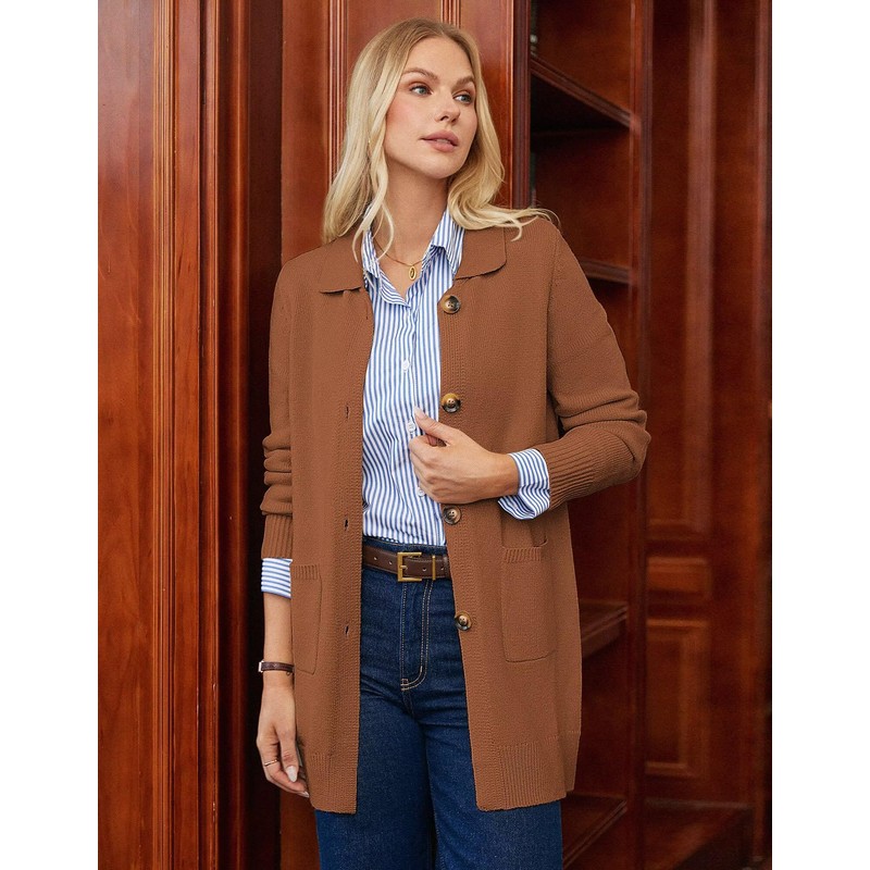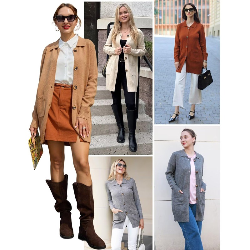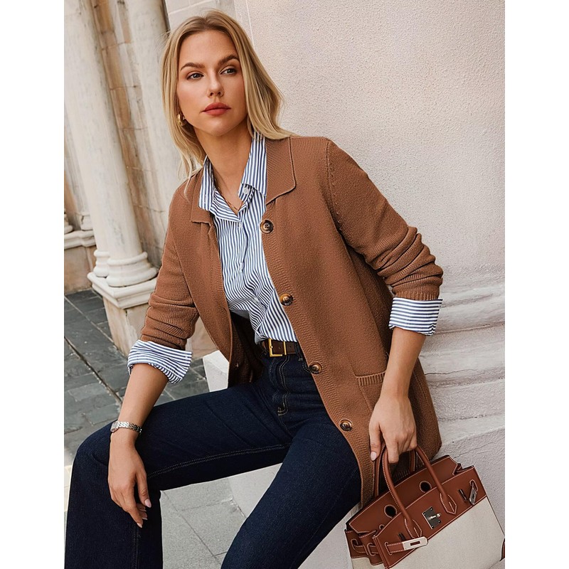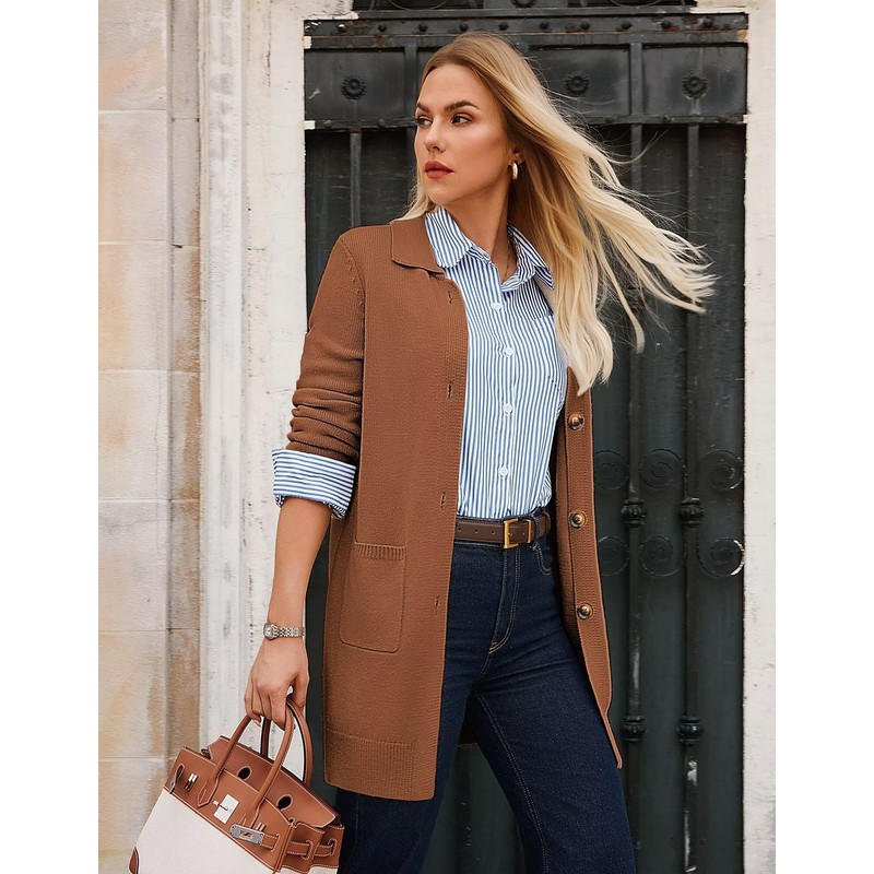 - Elegant Design with Functional Details: The mid-long sweater features a classic collar, refined buttons, and two functional pockets. The tailored blazer-like silhouette ensures a sleek drape—even over thick layers—preventing bulkiness, elevates your outfits, adding a polished, high-end touch