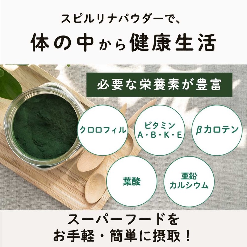 - Abundant Nutritions: Spirulina has a good balance of 9 essential amino acids that you need to take from food, so you can replenish your protein in in a small amount. Spirulina Protein Content is about 70% of dry weight, which is equivalent to about twice as much soy and 3 times the meat