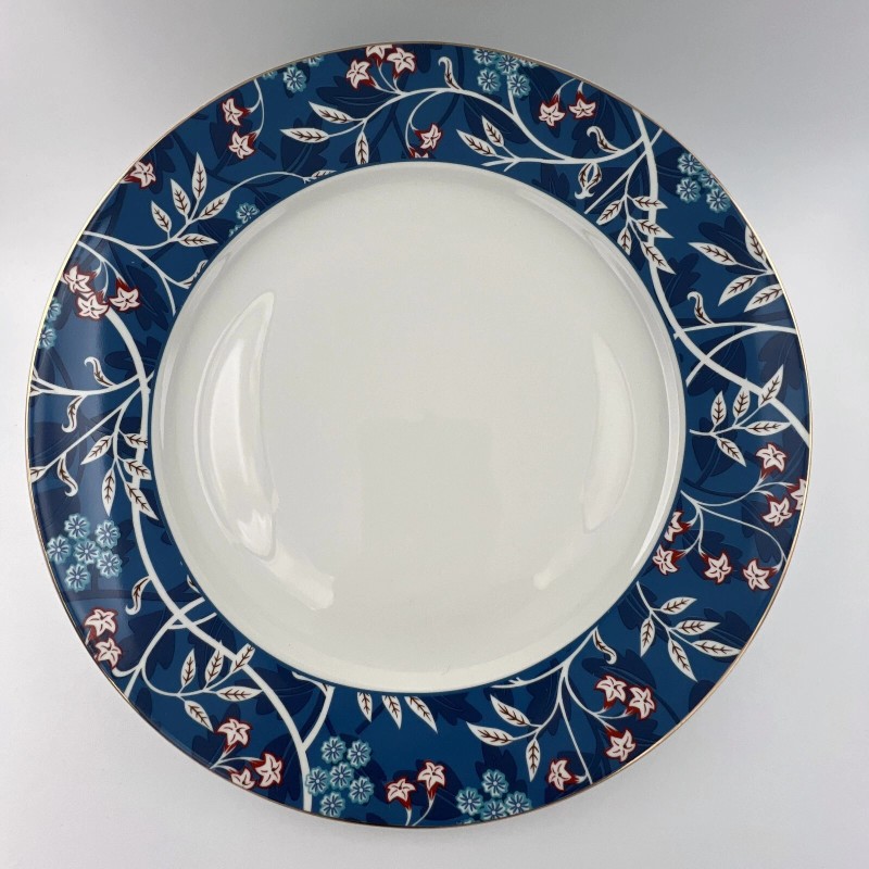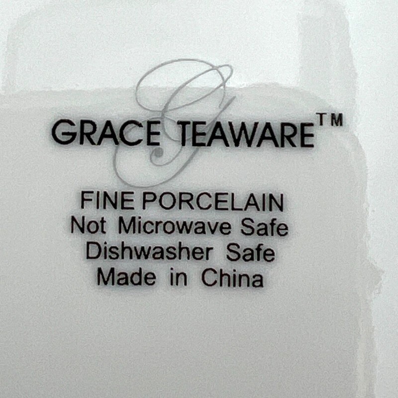 Grace Teaware Porcelain Dinner Plates 10 1/2" Blue & White Floral Gold Trim New