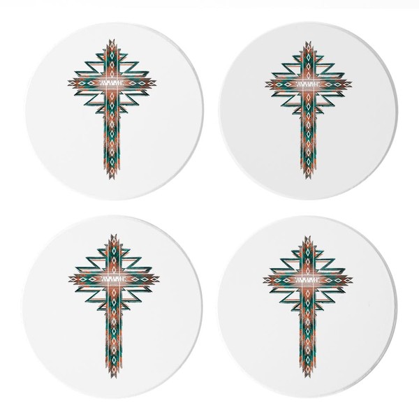 - Sold as a set of 4; Add a splash of personality to your cup holders with these stylish and functional car coasters; Showcases a southwestern style cross
