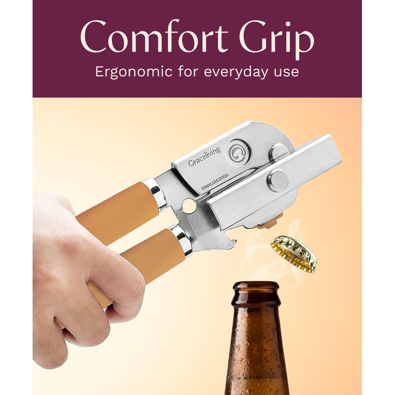 - 【Effortless Easy-Open Can Opener Manual with Oversized Knob, Soft-Touch Ergonomic Non-Slip Handle & Built-In Bottle Opener】 The unbreakable oversized knob rotates smoothly through a full 360° for uninterrupted turning and combined with the soft-touch, ergonomic, non-slip handle ensures effortless, stable operation—meeting the needs of those searching for can openers for seniors and those with arthritis. This versatile kitchen gadget also features a built-in bottle opener for multifunctional use.