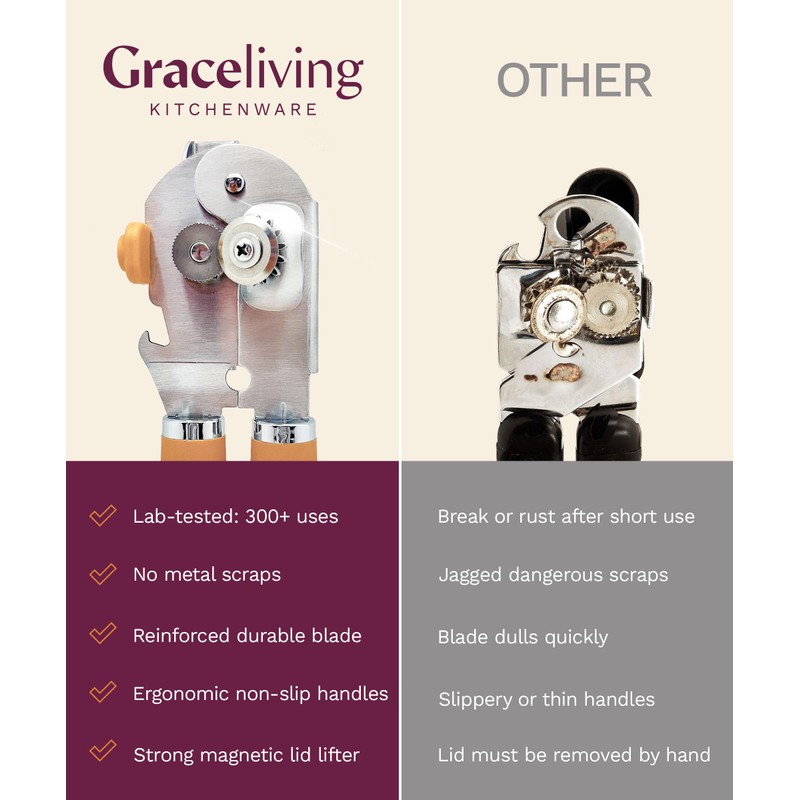 - 【Commercial‐Grade Kitchen Tool & Can Opener Manual—Lab-Tested for 300+ Uses 3× More Durable Than Standard Models】 Engineered for over 300+ uses (vs. 100 on typical models), this heavy-duty handheld can opener reduces replacements—saving you time, money, and minimizing kitchen waste. Ideal as a reliable kitchen essential tool and eco-friendly utensil.
