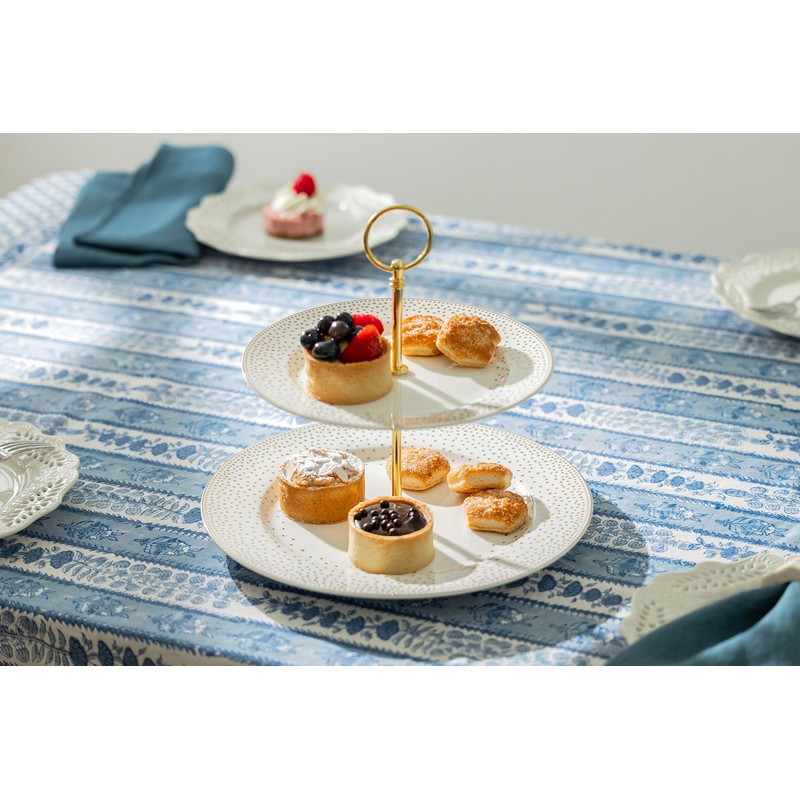Gracie China Shop Gold Dots Fine Porcelain 2-Tier Server, 2-Tiered Serving Platters, Regular