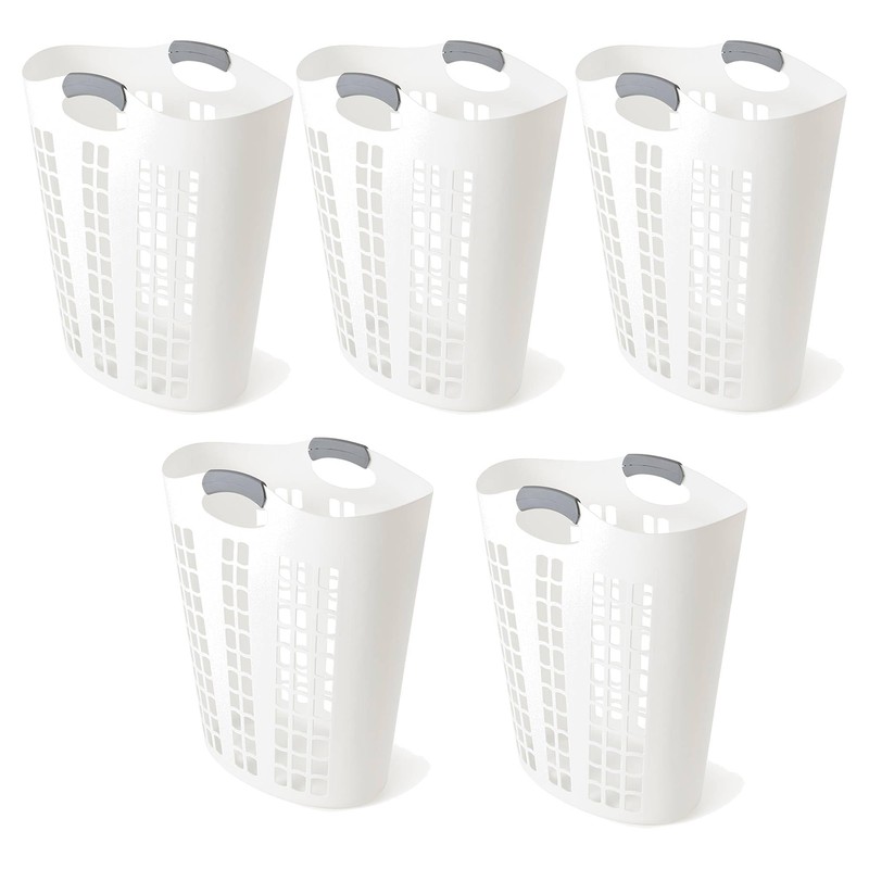 Gracious Living Easy Carry Flex Hamper, Large 87.5 Liter Lightweight Plastic Ventilated Laundry Basket Clothes Bin with Handles, White (5 Pack)
