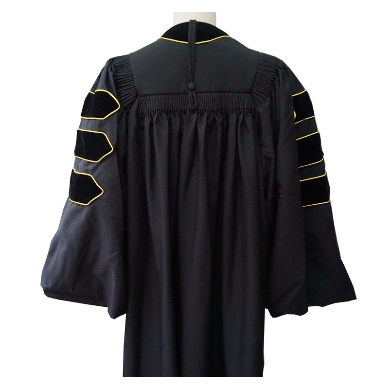 Grad Days Doctoral Gown Unisex Deluxe Black Trim Gold Piping 60''(6'3''-6'5'')