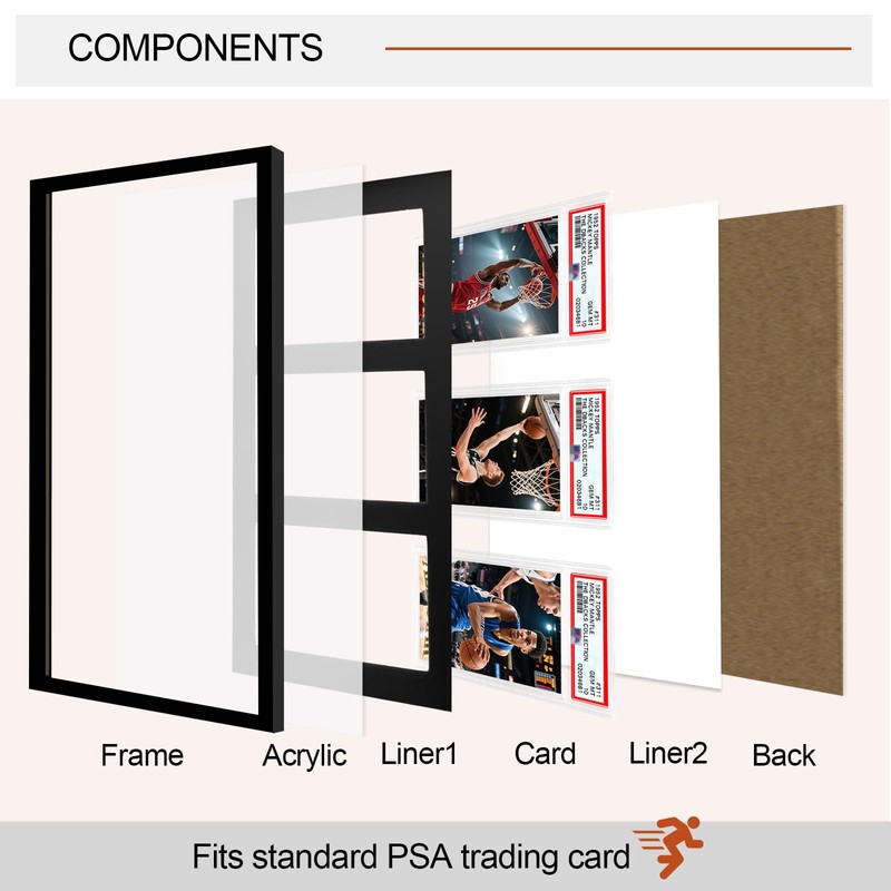 - Compatible with PSA-Graded Cards: This 14.4" x 8.5" x 0.65" triple card display frame fits standard PSA slabs, allowing you to showcase up to three graded cards in a single solid wood frame.